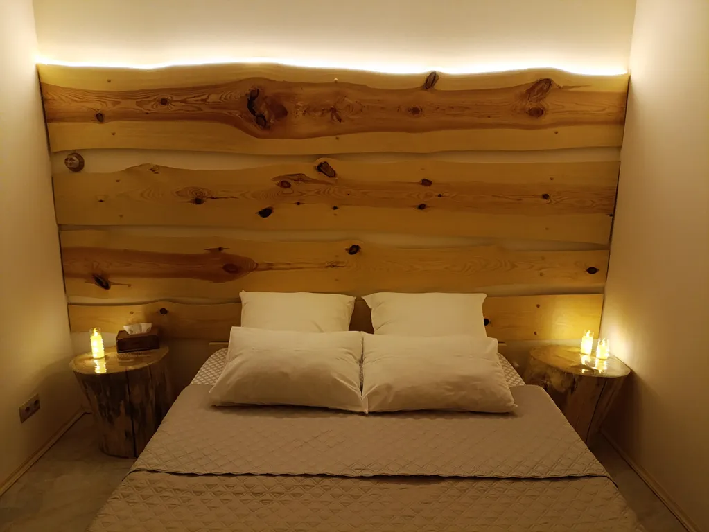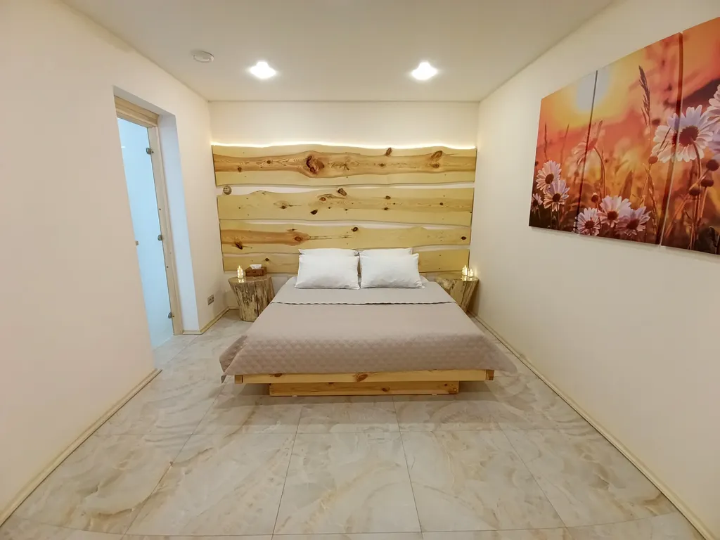 - Спальня с большой двуспальной кроватью и новым ортопедическим матрасом, с эффектом памяти, гарантируют комфортный, крепкий и здоровый сон. Чистое постельное белье. В спальне установлен второй Smart TV телевизор.