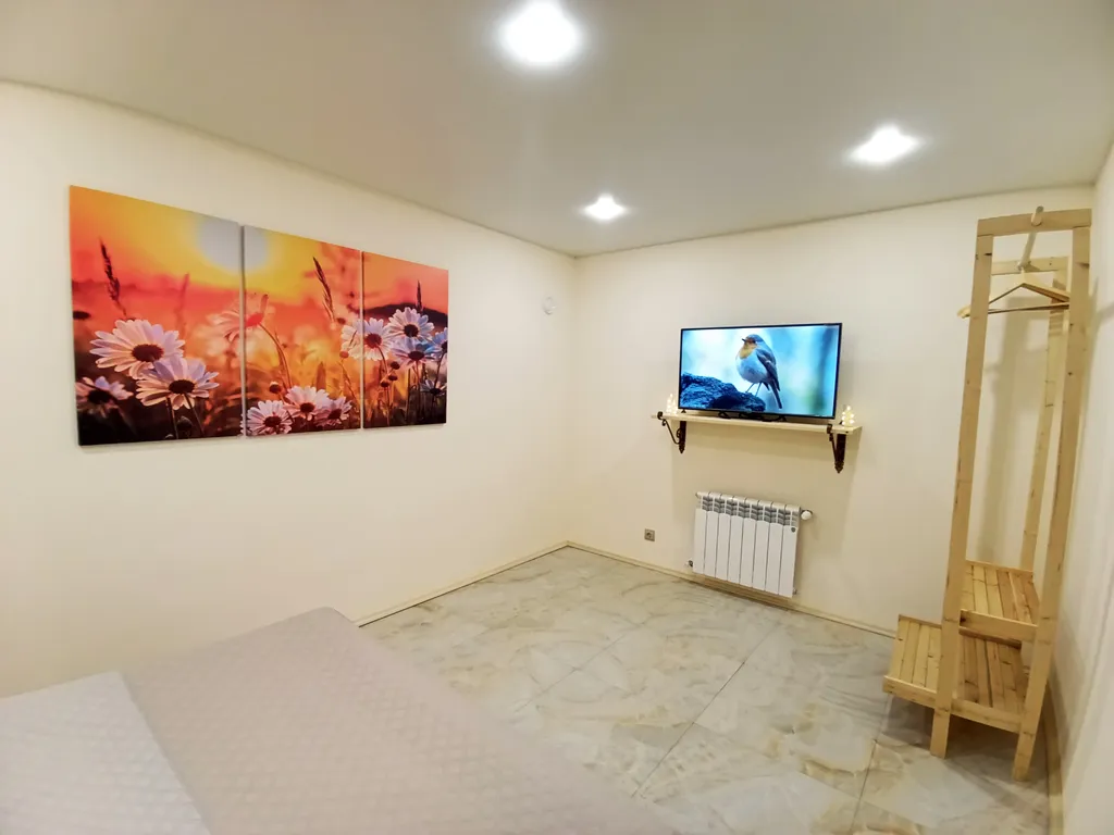 - В гостиной диван-кpoвать, кондиционер, Smart TV телевизор, Wi-Fi, Умная Яндекс станция. Подписка на онлайн кинотеатры.