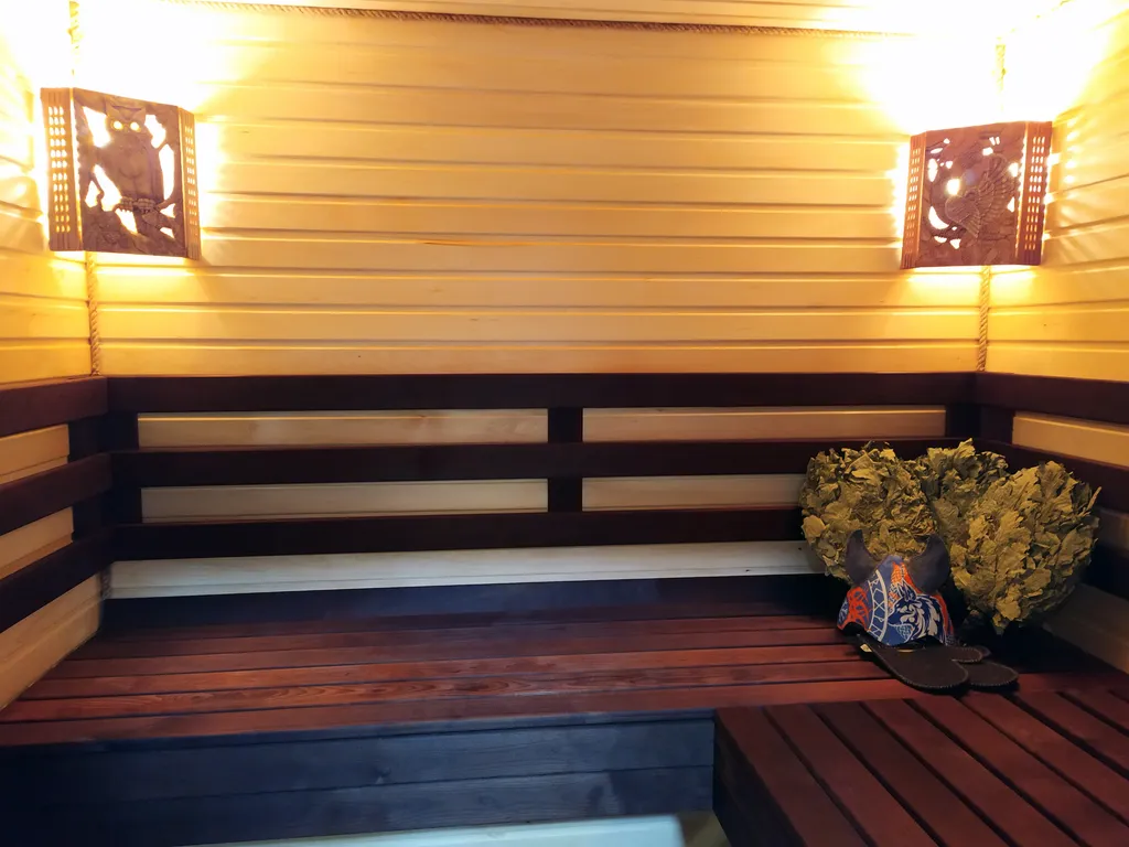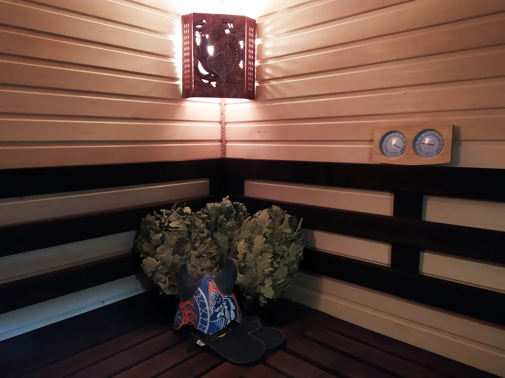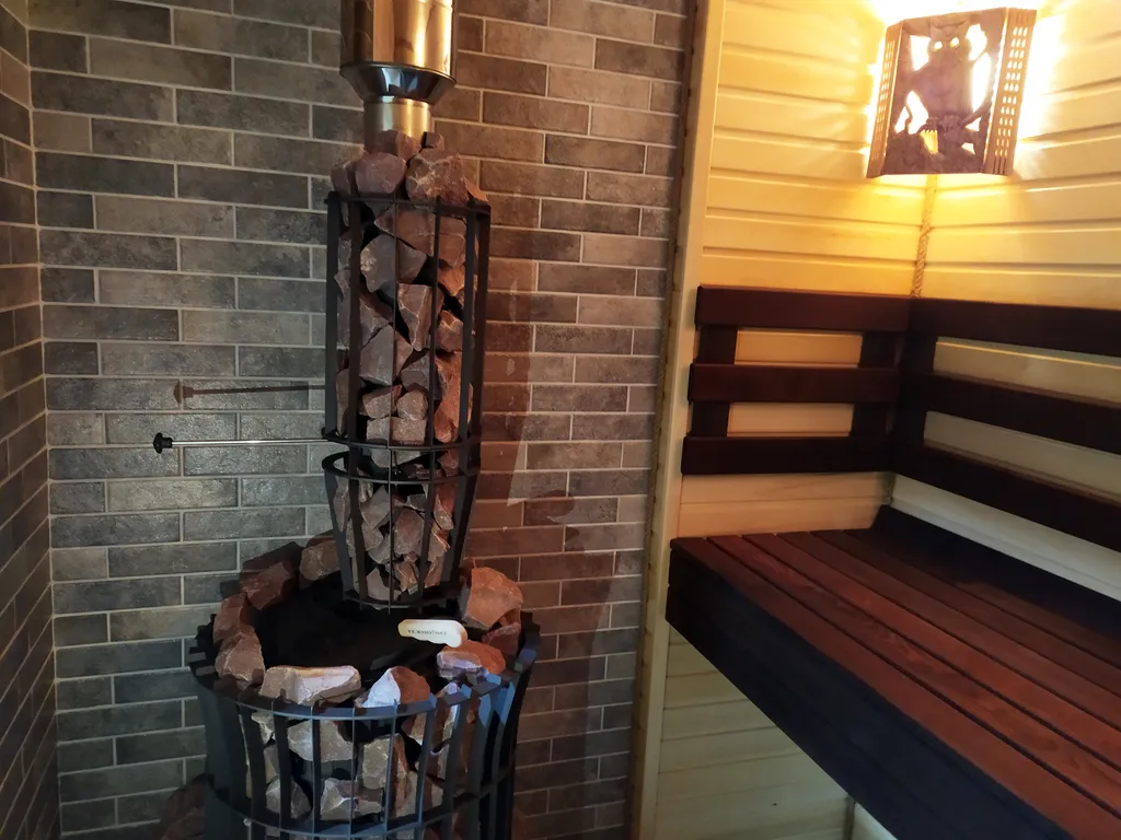 Русская парная расположена внутри дома и выполнена в лучших традициях. В парной широкие полки, приточная вентиляция. Чугунная печь на дровах, с закрытой каменкой - это более полутоны чугуна и камней, которые дарят тепло до следующего дня. Печь наполнена жадеитом и обложенная малиновым кварцитом. В парной ароматные лекарственные травы. Напоминаем алкоголь и поход в баню совершенно несовместимы.